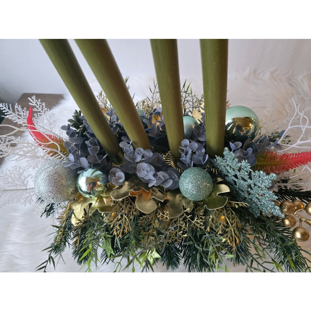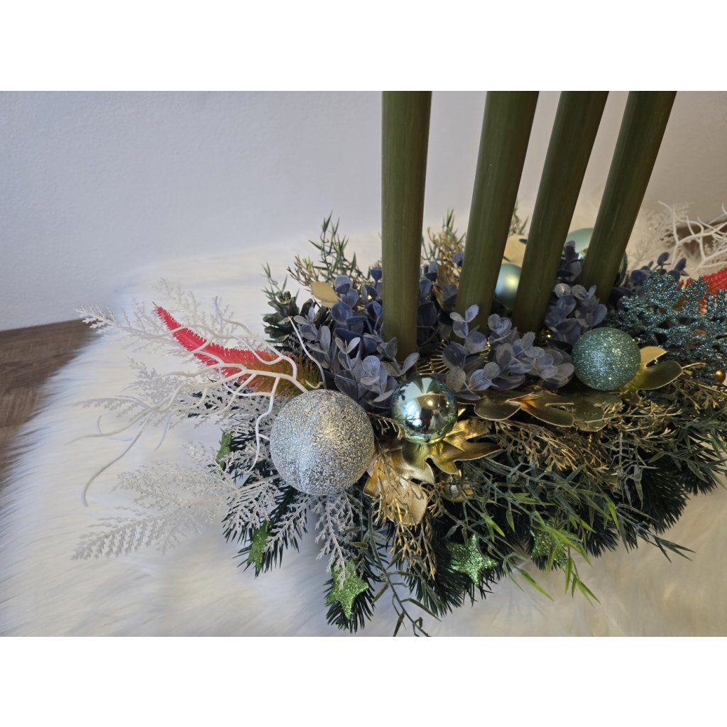 Čtyři štíhlé zelené svíce symbolizují adventní neděle a dodávají dekoraci moderní a přírodně laděný vzhled. Svícen se skvěle hodí na stůl, komodu i jako slavnostní ozdoba do obývacího pokoje.