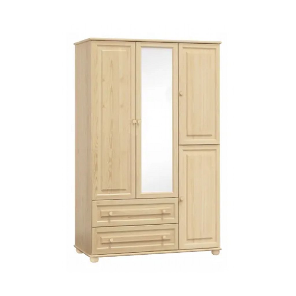 Nejlepší šatní skříň doma je ta, která pojme to nejdůležitější a pomůže při každodenních činnostech. To je naše třídveřová šatní skříň se zásuvkami a zrcadlem. Borové dřevo je oblíbeným materiálem pro stavbu nábytku – včetně takových krásných skříní, které se mohou stát součástí vašeho domácího zařízení. Takovou dřevěnou borovicovou šatní skříň lze umístit do šatny, ložnice, obývacího pokoje a dokonce i do předsíně. Může být i součástí vybavení dětského pokoje. Rozměry: Rozměry: Šířka skříně: 135 cm, Výška skříně: 190 cm, Hloubka skříně: 58 cm, Tloušťka desky: 2 cm, Výška nohou: 5 cm.
