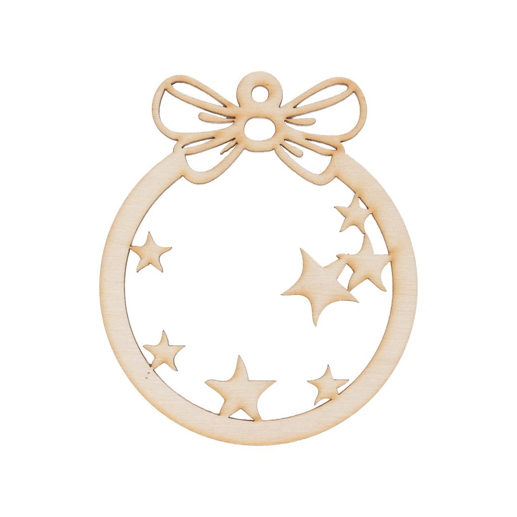 Krásný dřevěný vánoční dekor ve tvaru ozdoby se stužkou a hvězdami je ideální pro kreativní tvoření i jako hotná přírodní dekorace. Jemně vyřezávaný motiv dodá vašemu stromku, věnci či dárkům originální kouzlo. Dřevo lze snadno barvit, lakovat, zdobit třpytkami či technikou decoupage. Skvělé pro rodinné tvoření, školní dílničky i vánoční výzdobu interiéru.