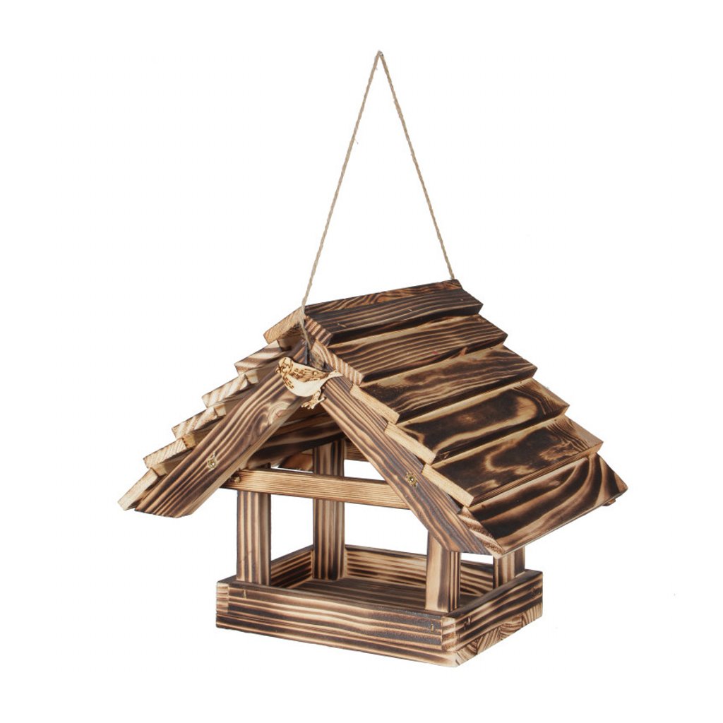 Dřevěné krmítko pro ptáky XXL, pálené dřevo, závěsné
