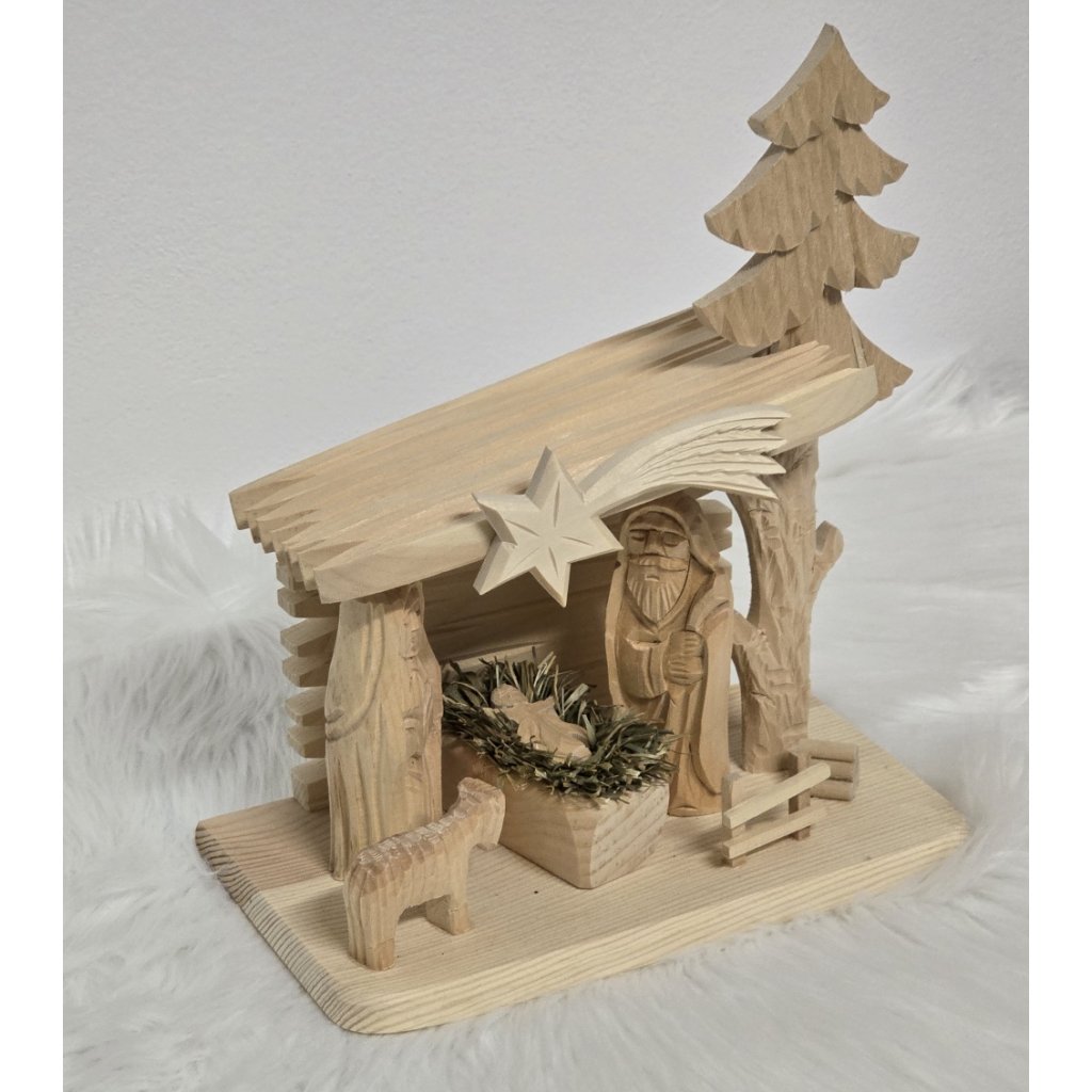 Dřevěný betlém s hvězdou a ovcí – ručně vyřezávaná vánoční dekorace