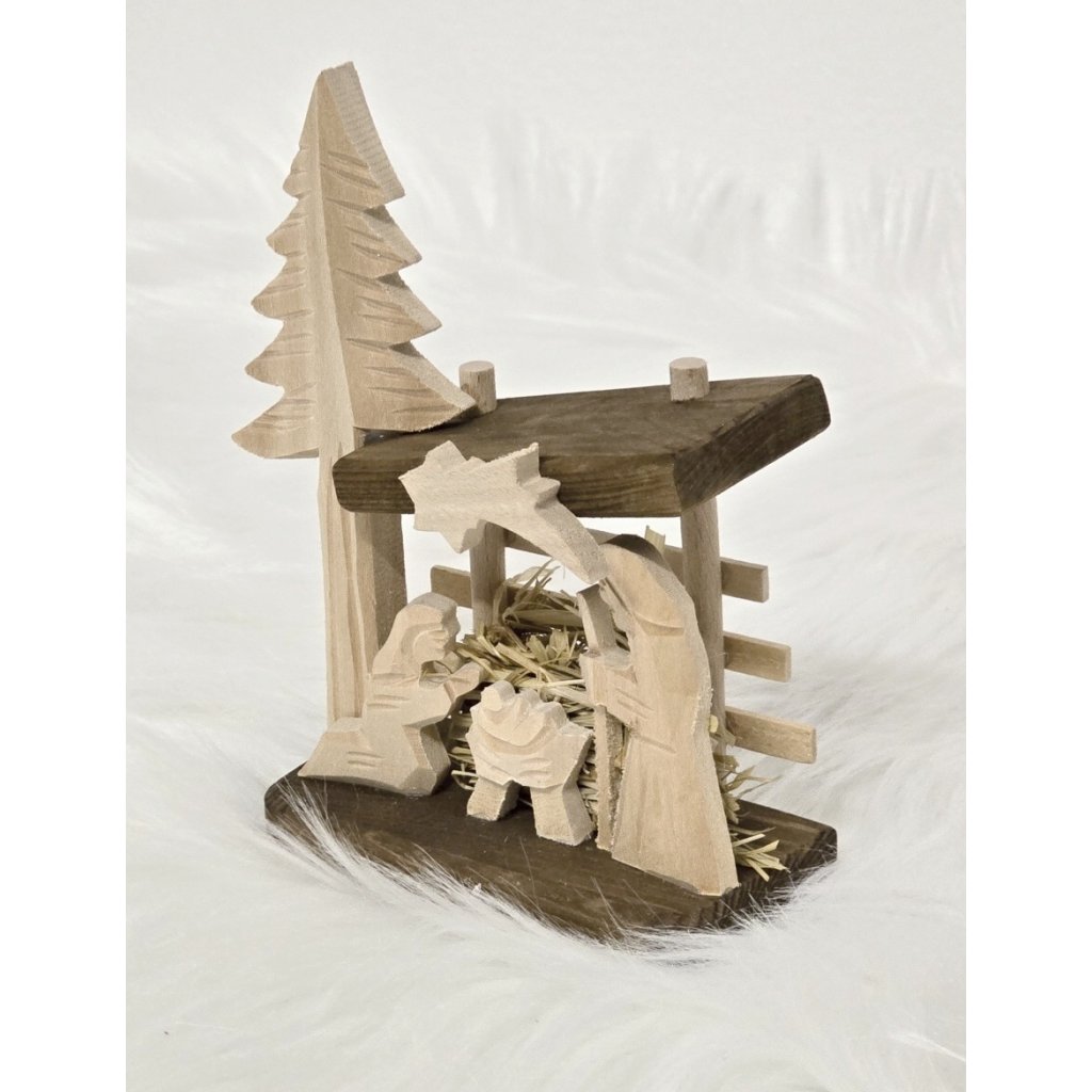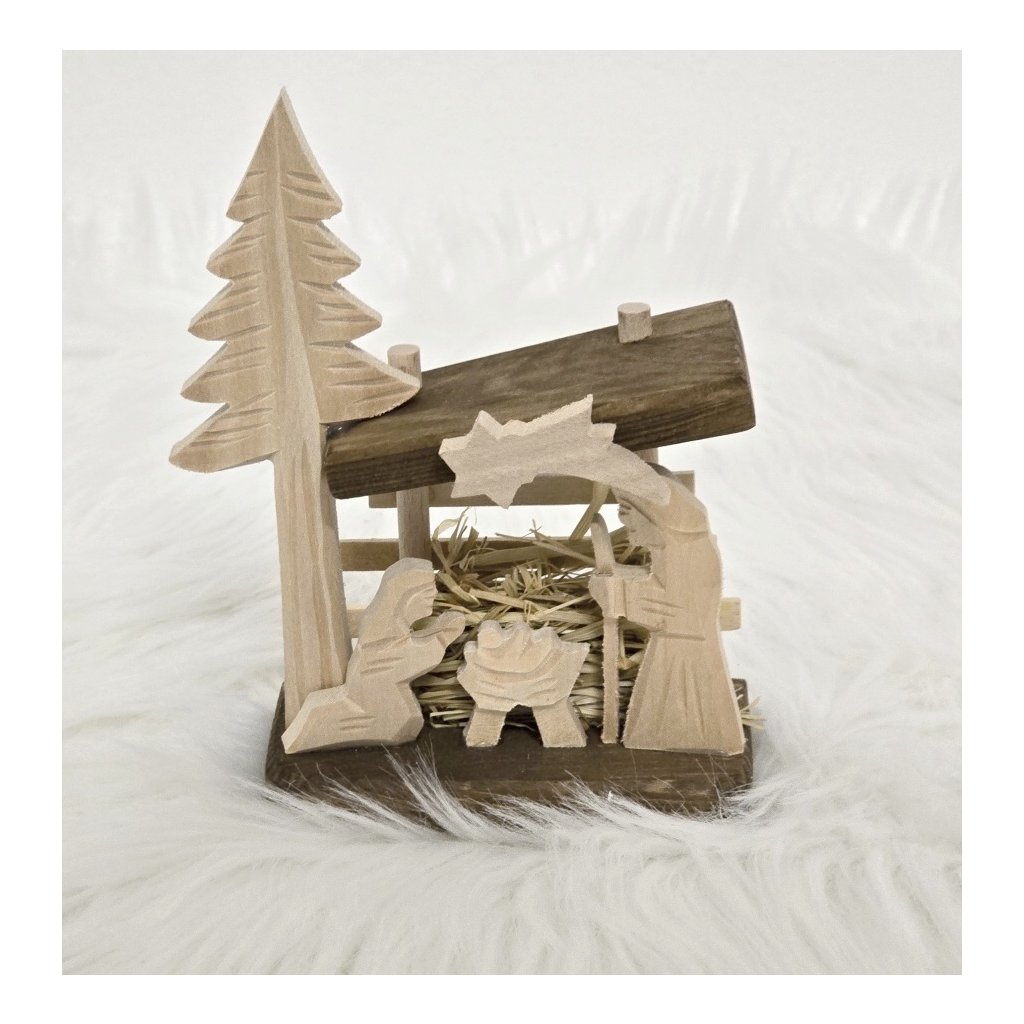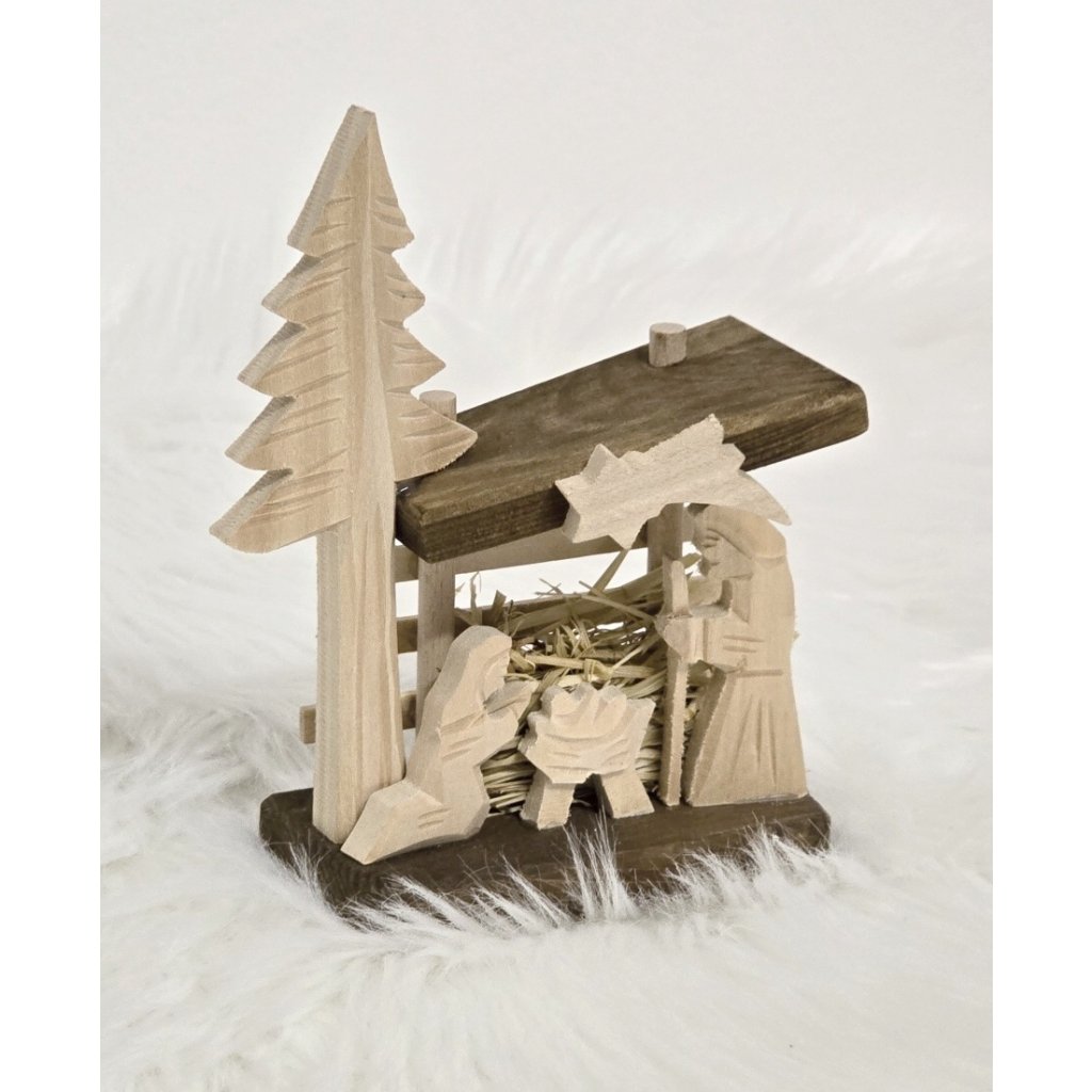 Dřevěný betlém s jesličkami – přírodní vánoční dekorace