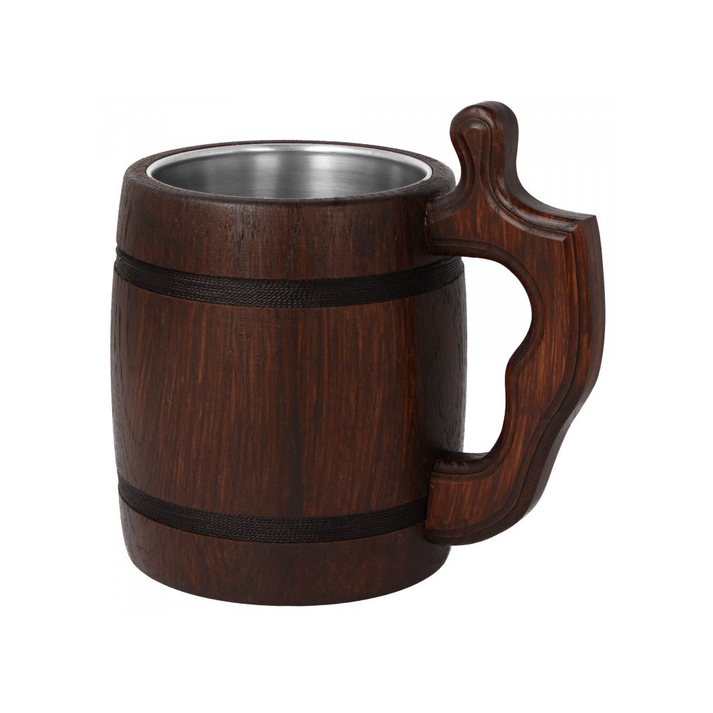 Stylový dřevěný půllitr na pivo o objemu 0,5 l v tmavém provedení je ideální dárek pro milovníky piva a originálních doplňků. Vyroben z kvalitního dřeva s nerezovou vložkou, která udržuje nápoj déle chladný a usnadňuje údržbu.