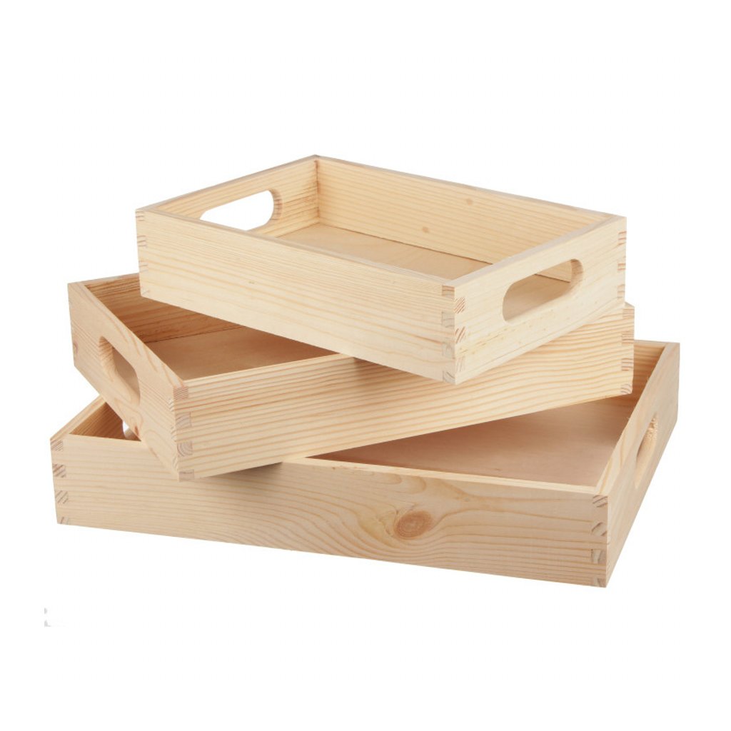 Praktická sada dřevěných podnosů 3v1 je ideální pro servírování snídaní, občerstvení i dekorací. Tři velikosti umožňují pohodlné používání doma, na zahradě i na terase. Každý podnos je vyroben z kvalitního přírodního dřeva a pevně spojen pro dlouhou životnost. Boční úchyty zajišťují snadné přenášení. Povrch lze dále upravit nátěrem, lazurou či kreativním zdobením. Univerzální doplněk do domácnosti i skvělý základ pro tvoření.