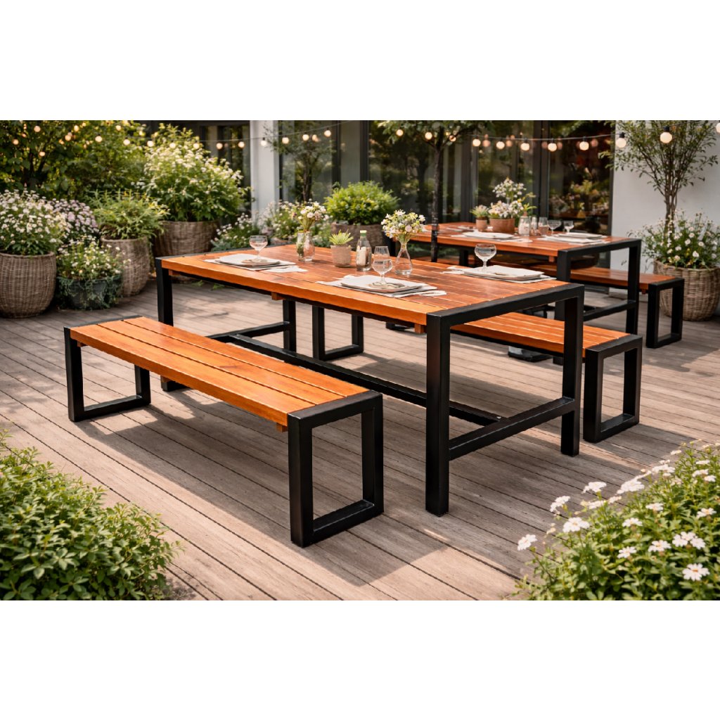Colorado trim zahradní sestava nabízí jeden stůl a dvojici lavic. Stůl a lavice jsou konstruovány na stabilním základě z uzavřeného profilu 60x40mm, který je opatřen práškovým lakem. Rozměry stolu jsou 166x70x75 cm (délka x šířka x výška), zatímco rozměry lavic činí 150x30x44 cm (délka x šířka x výška).
