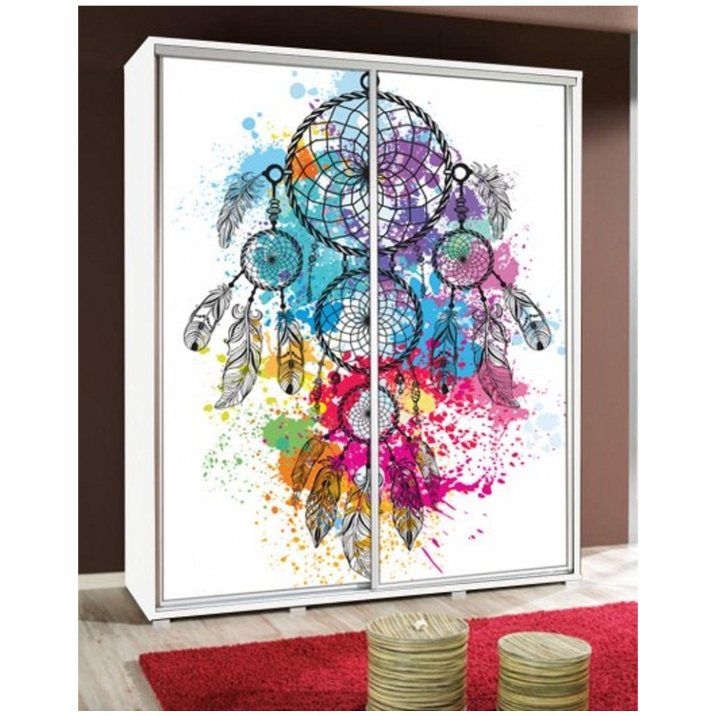 Přední část šatní skříně je vyrobená formou posuvných dvířek s motivem.