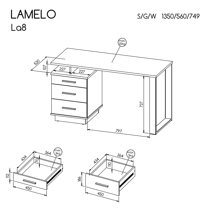 psací PC stolek z dřevotřísky LA8 Lamelo dolm