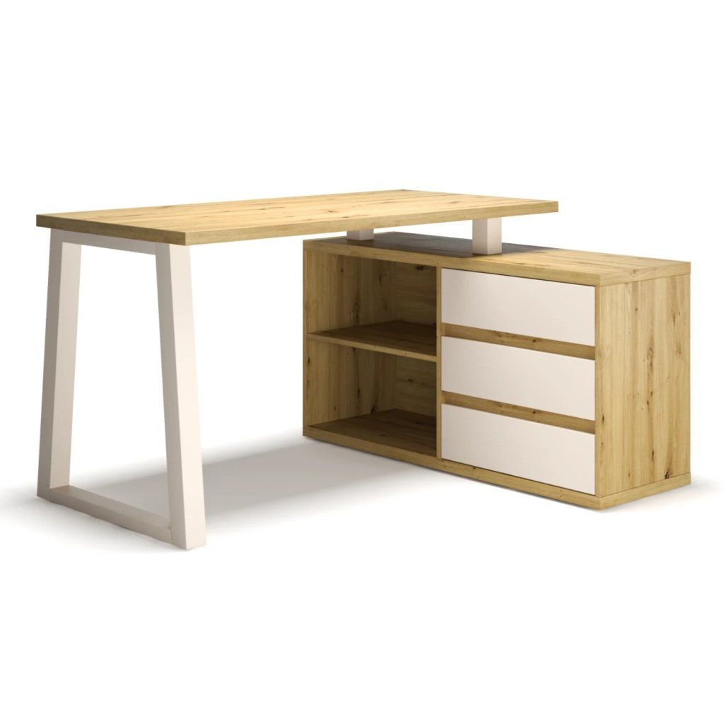 Psací stolek Iwo z dřevotřísky dub artisan / bílý – moderní pracovní stůl se zásuvkami a policemi