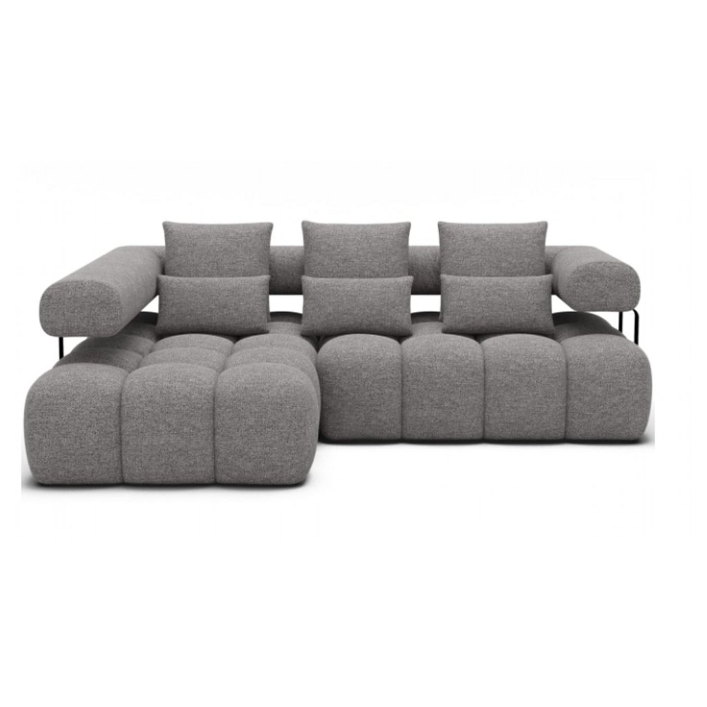 Měkké polštáře, ergonomické opěradlo a precizní zpracování poskytují maximální komfort, zatímco stabilní černé plastové nohy o výšce 2,5 cm dodávají soupravě stabilitu a podtrhují její moderní charakter. Levvi je navržena v neutrálních barvách, takže se snadno přizpůsobí jak minimalistickým, tak i klasickým interiérům. Tento model spojuje eleganci, funkčnost a dlouhou životnost v jednom kusu nábytku.