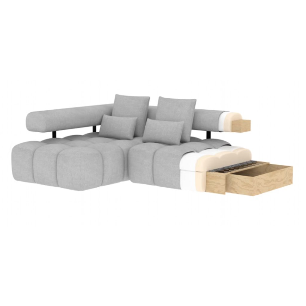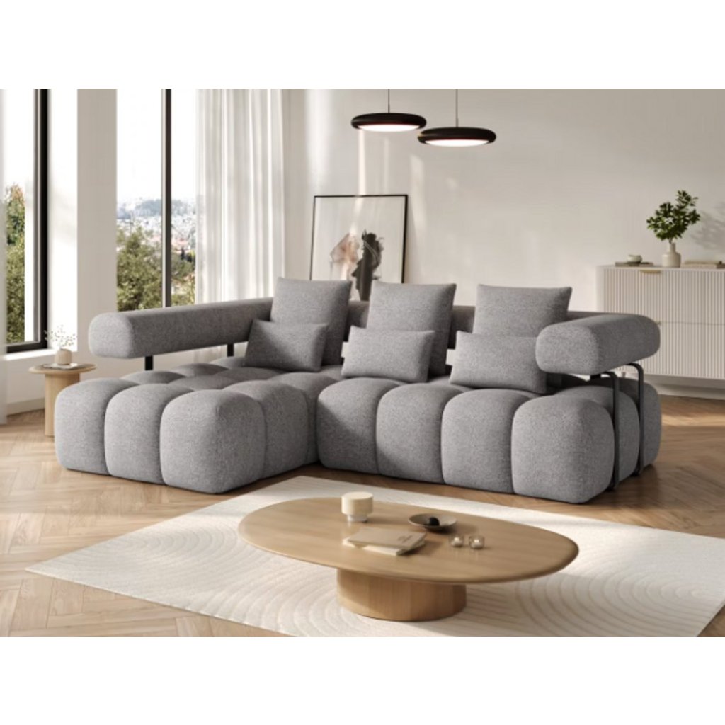 Rohová sedací souprava Levvi je ideální volbou pro ty, kteří hledají kombinaci luxusního designu, pohodlí a funkčnosti. Její rozměry 260 × 184 × 102 cm ji předurčují do prostorných obývacích pokojů, kde se stane dominantním prvkem interiéru. Díky elektrickému prodlužování sedáku se během okamžiku promění v pohodlnou spací plochu o rozměrech 110 × 187 cm – perfektní pro každodenní odpočinek i příležitostné přespání hostů.