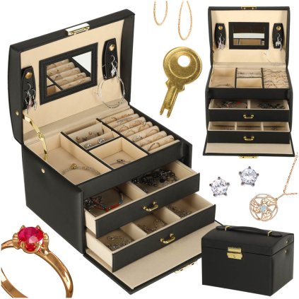 - BEZPEČNÉ PRO ŠPERKY - přihrádky jsou vyloženy měkkým materiálem, který chrání jemné a cenné předměty před poškrábáním.