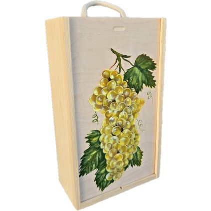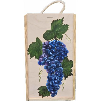 Dřevěná Dárková krabice na víno pro 2 láhve, originální olejomalba obrázek Fialové víno