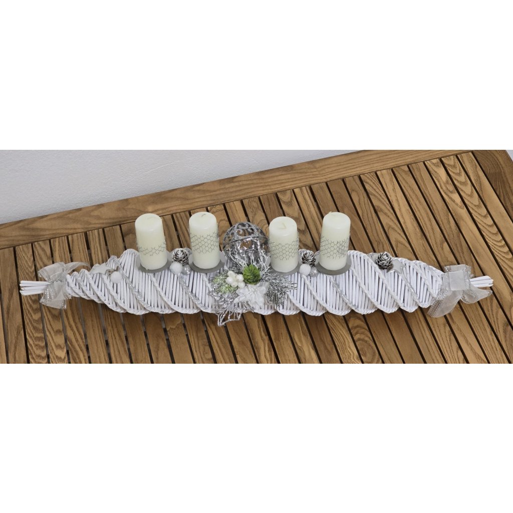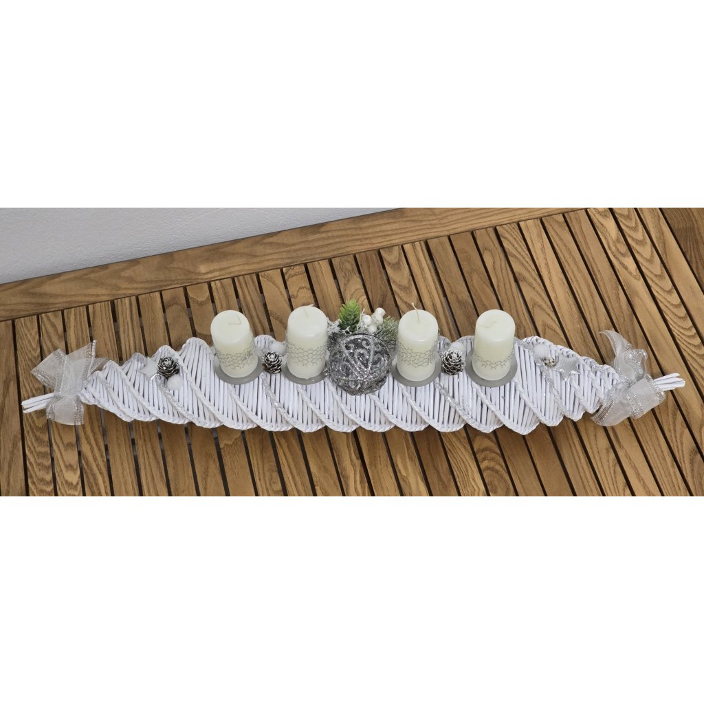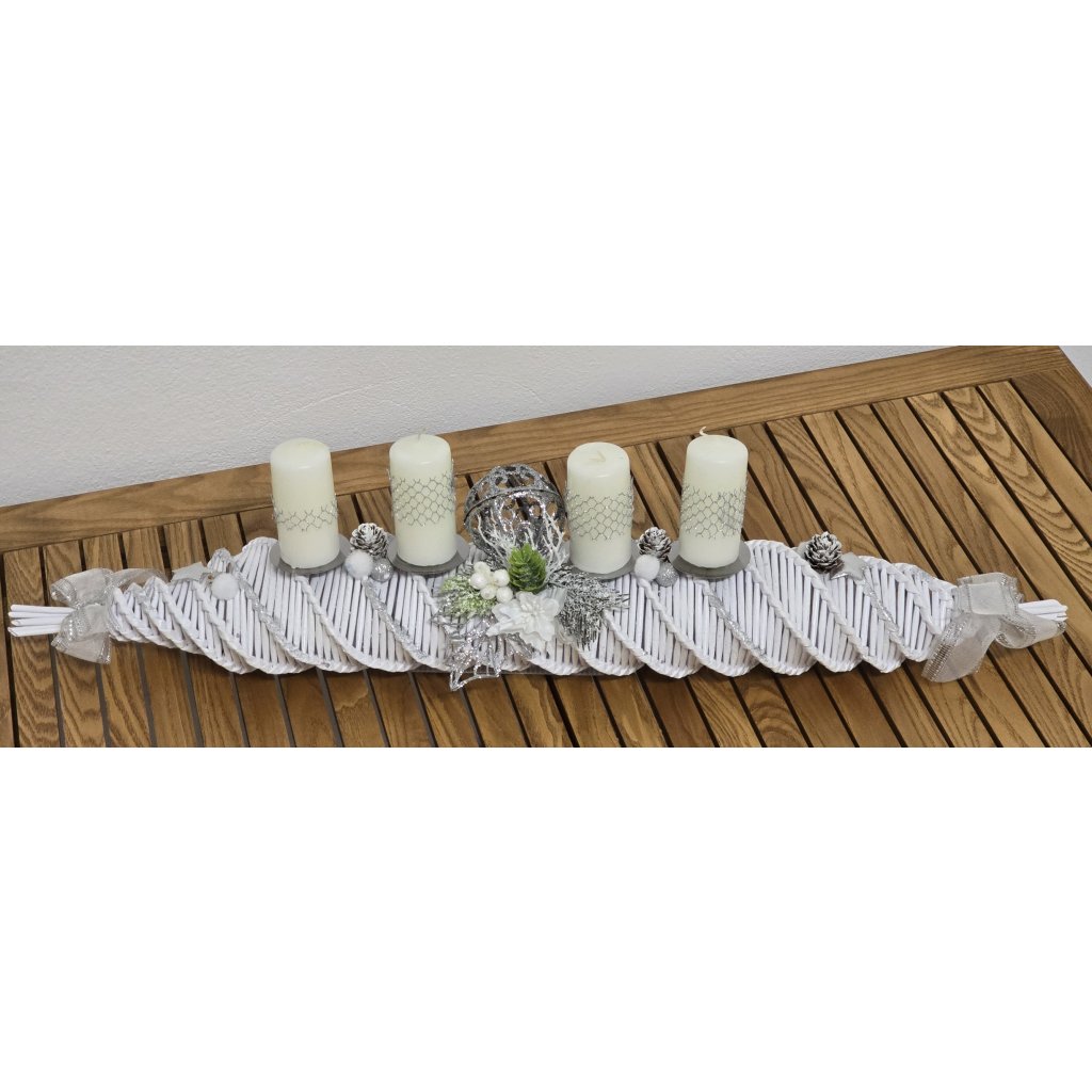Vánoční proutěná štola s adventními svíčkami – bílá dekorace